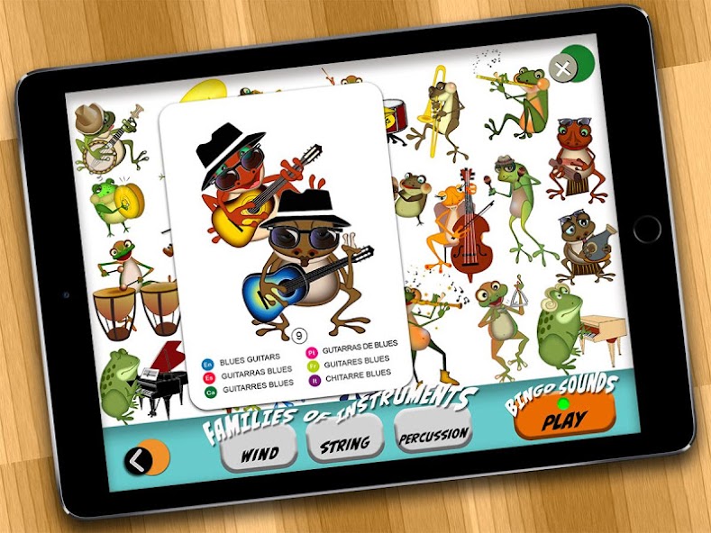 This educational app has been designed with the purpose of teaching musical instruments to children, beginning from 5 years old. It combines card games and digital content, which includes the terms in English, Spanish, French, Catalan, Portuguese, and Italian and the sounds are represented in the cards so that users can associate each term with its sound and image.
